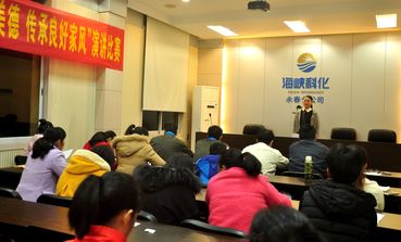 12月28日,為宣揚傳統美德,傳播良好家風,宣揚職工中的好人好事,海峽科化永春分公司女工委開展了以“弘揚中華美德,傳承良好家風”為主題的演講比賽,來自一線車間的12名女職工參加了比賽。 此次比賽稿件均出自參賽人員的原創作品,并采取現場評分的方式進行....…
